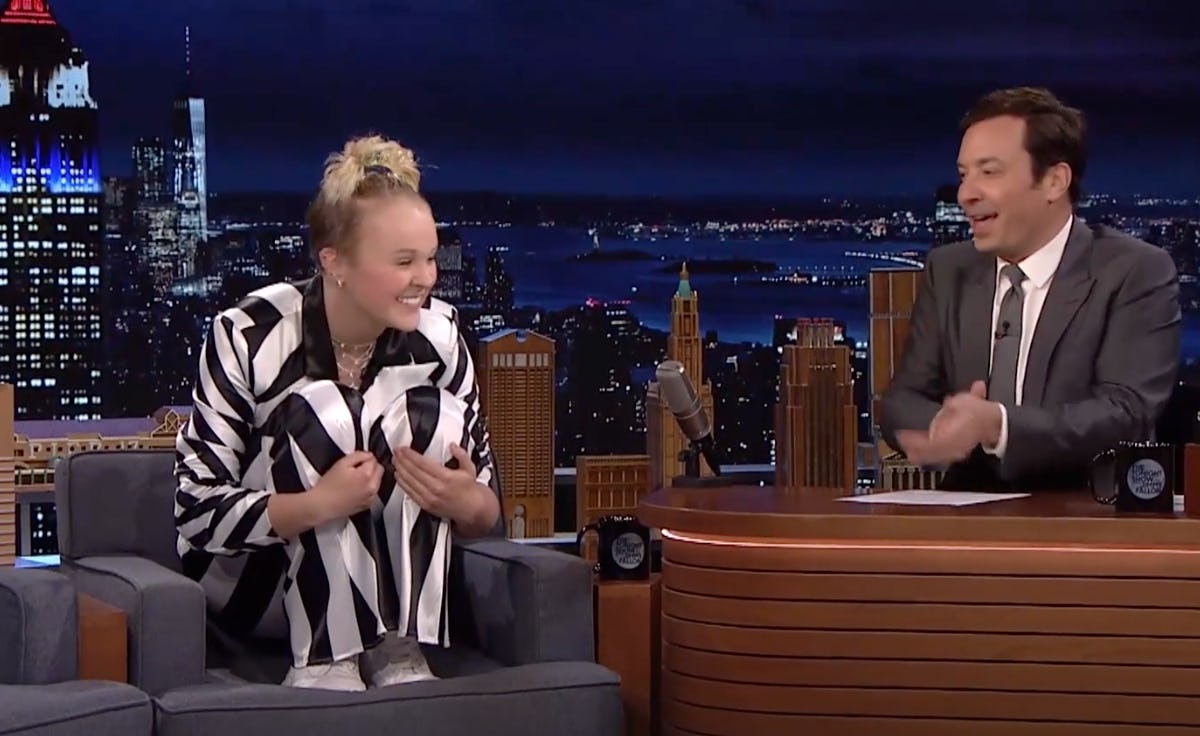 Jimmy’s getting a little long in the tooth, plus he’s got some major projects like That’s My Jam and Clash of the Coverbands occupying every precious free moment he’s got intellectually. Why not let another performer who can actually dance and sing and carry a conversation take over? She’s a judge this season on FOX’s So You Think You Can Dance, and Jimmy tells us that Jojo’s music video for the peacemongering anti-violence anthem “Boomerang,” which I walked down the aisle to, is nearing a billion views on YouTube. She was the youngest Ellen guest host ever, for sobbing out loud. Those are credentials.
