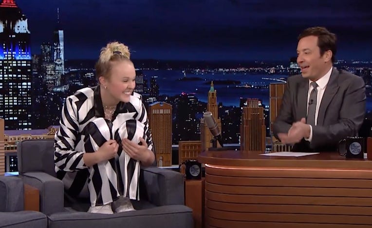 And last night, on her golden 19th birthday (it was May 19), she went on the Tonight Show in a formal rayon-blend Beetlejuice get-up and outshone Jimmy, the giggliest sycophant on television. I screamed, “”EGOT!” again. Jojo’s natural charisma bested Jimmy’s hyperactive approximation of a fun person.