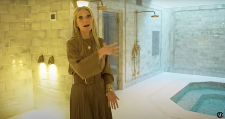 I am getting sleepy, so very sleepy, even without the aid of my Goop-branded powders and tinctures for rest. You are too. But can you make it through the end? Can you at least make it to 10:46 into the video, when Gwyn shows off the room in her house she calls “a bit of a spa?” inspired by one of her favorite Parisian spots Les Bains du Marais?