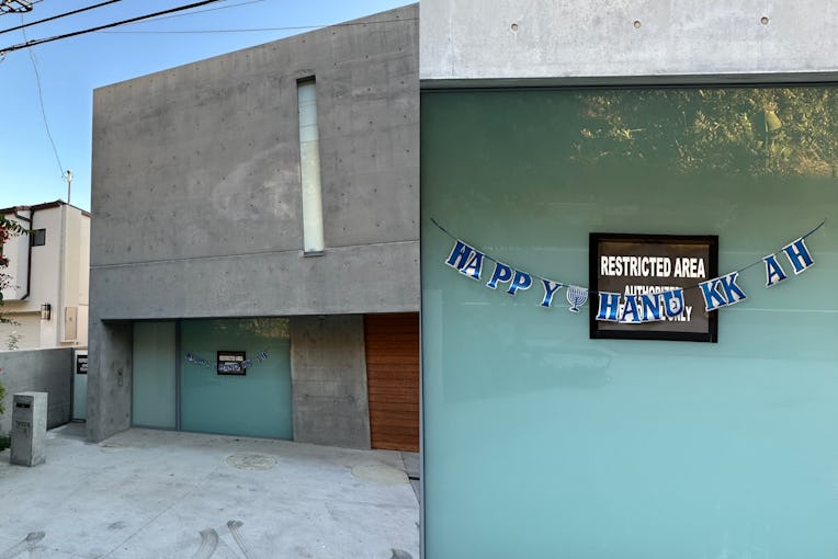 Kanye West’s Malibu beach house is ready for the holiday season — the Jewish one, that is. The $57 million concrete box has been bedecked with a “Happy Hannukah” garland.