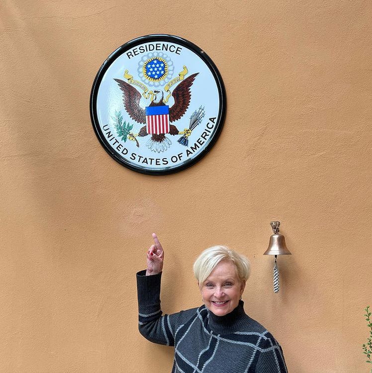 She MissedWhat do you think she is pointing atCindy McCain on InstagramJack KoloskusLaser PointerJan. 11, 2022Cindy McCain has reported to her new ambassadorship posting in Rome. But what is she pointing at here????