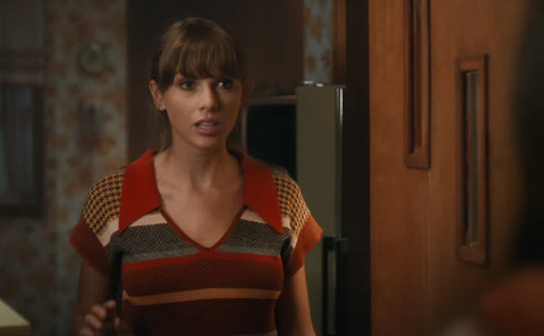 This time the brief play in the middle of the video is less Marriage Story and more SNL sketch that got cut for time. Comedians John Early, Mike Birbiglia, and Mary Elizabeth Ellis star as Chad, Preston, and “Kimber,” the obsessive sons and daughter-in-law of Swift who namedrop her relentlessly. At Swift’s funeral (where everyone is platinum blonde for some reason), they’re arguing over the pop star’s estate and learn that she has cut them out of the will. Chad has a brief moment of hope, though.