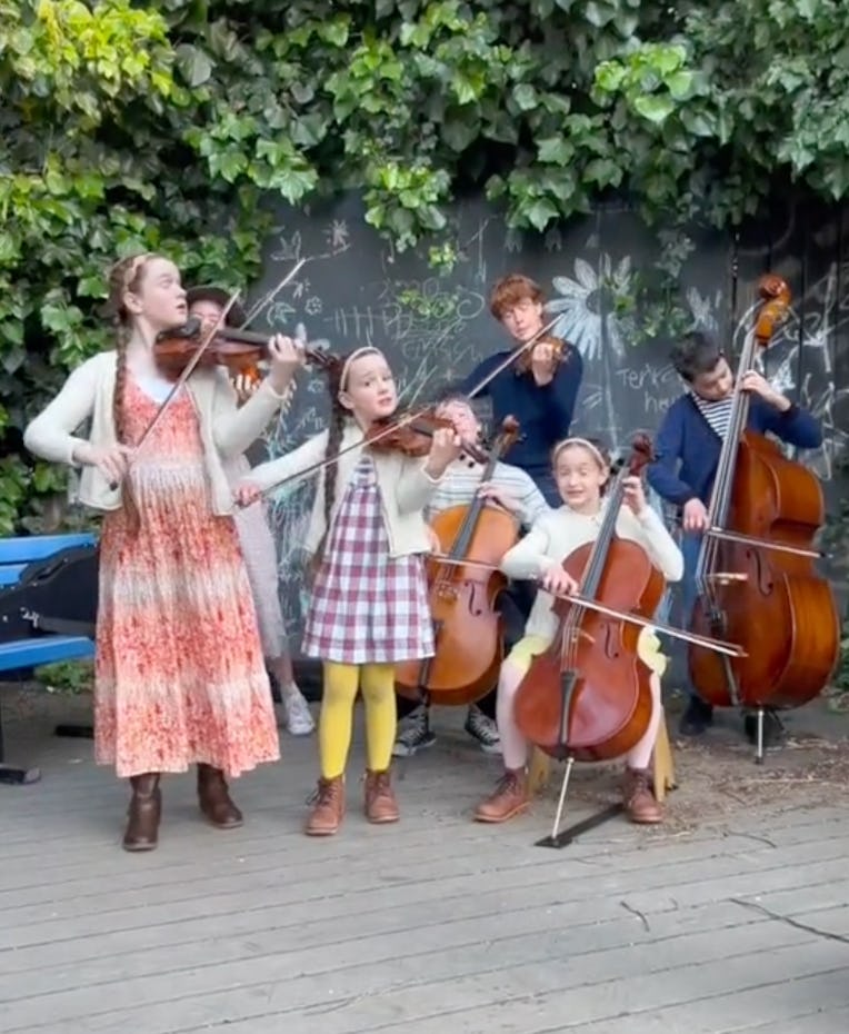 Beware: A TikTok family of ten homeschooled string-virtuoso children and their parents are driving their airstream trailer from a two-bedroom apartment in San Francisco right onto your itty bitty iPhone screen, all the while misappropriating viral song clips about sex for their wholesome Trapp Family Singers-style family band content.