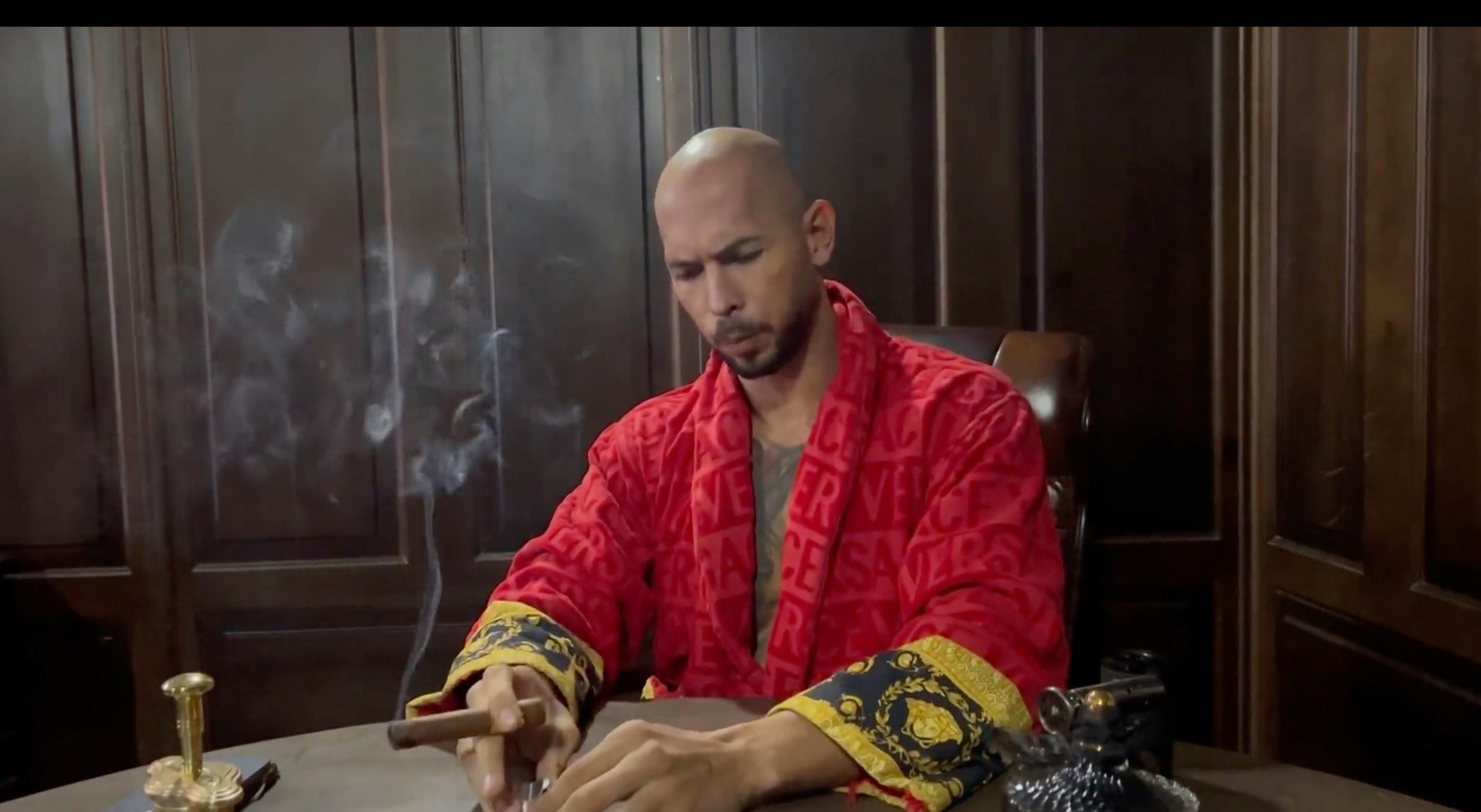 Is his accent British? Texan? Maybe Romanian, as he’s lived there since 2017, for reasons possibly concerning the human trafficking-related raid on his home this past spring. It’s unclear what kind of fake it might even be. Tate is American; he was born in D.C. to champion chess player Emory Tate and a British mother, Eileen Ashleigh. He grew up in Chicago, Indiana, and eventually, Luton in the U.K. It makes sense then that Tate might have developed a hybrid inflection of some kind. But even his combo seems to change depending on his crowd. There are certainly some clips of Tate speaking in a full U.K. dialect: