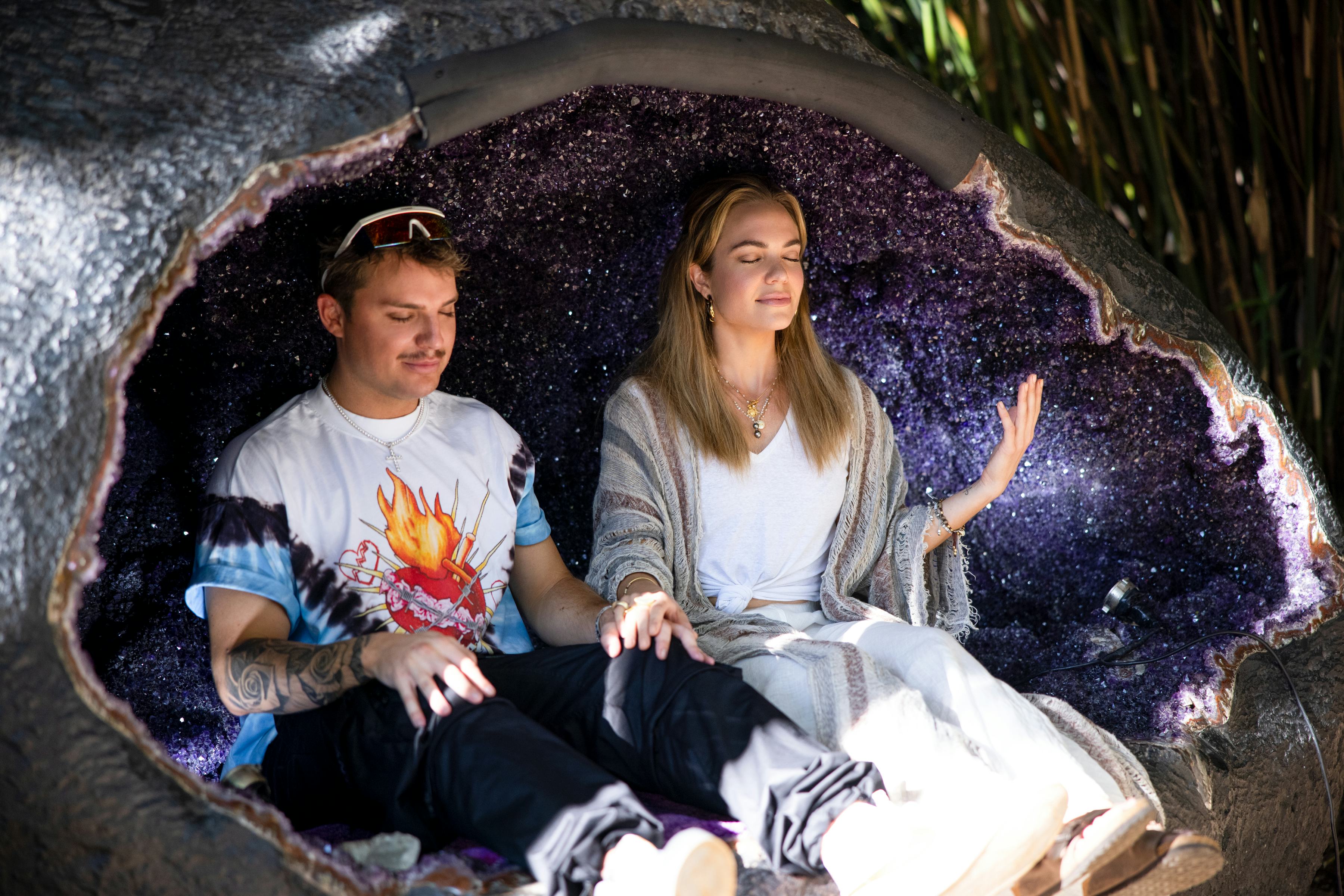 Between recording her first album, Sarah gets entangled in a love triangle with model Elias Chigros and digital marketer Nathan Favro, who has hooked up with every woman within a fifty kilometer radius, from boutique owner Hannah Brauer to holistic healer Elle Watson, also his roommate, who occasionally flirts with Nathan even when her (seemingly clueless) boyfriend is around. Jade, despite his frosted tips, flame-emblazoned tees, and Ed Hardy-esque taste for embellished denim lending him a resemblance to Guy Fieri, strikes an easy rapport with sisters Jess (a designer) and Lauren Johansen-Bell (“Jess’s sister”). His primary enemy is Sarah’s agent (and only friend), Alex Reid, who sets out to expose Jade’s fake followers, which only exacerbates the already-mounting tension between Sarah and the Byron clique. Tears and confrontations follow, as do Instagram stories and influencer-designer collabs. Someone angrily points a finger, and someone else unironically mimes a mic drop. Ceremonial cacao is brewed, and “Savvy B” is swigged. It’s not all bad, though: resident artist Cai Leplaw sells some of his art and delights at the prospect of eating dinner that month.