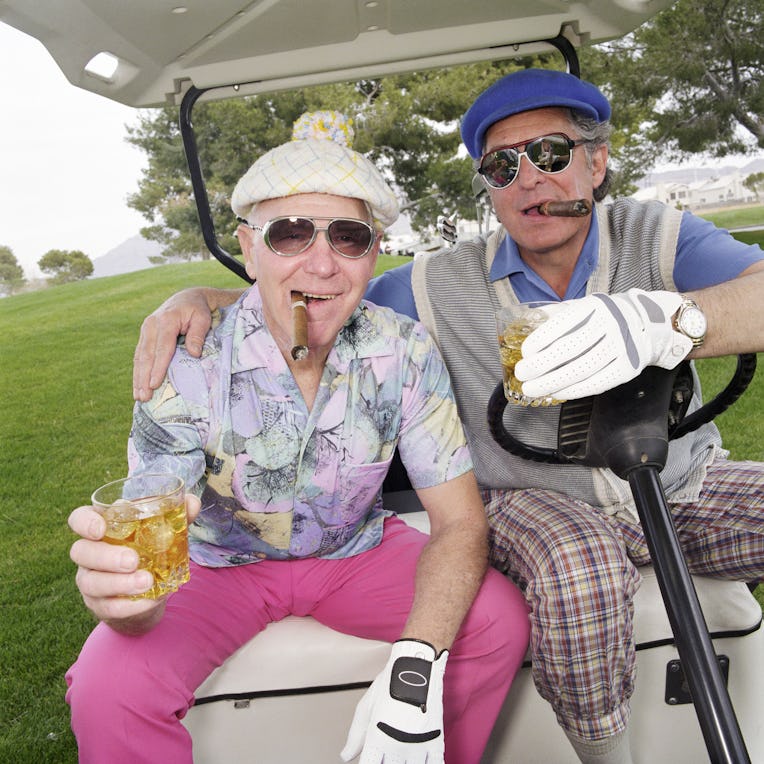 I have never played golf, and I probably never will, because the fun parts of golf – like wearing plaid pants and having someone to carry your stuff around all day – aren’t built into the actual game. I’m not here for sports, I'm here for leisure. I am only interested in golf’s aprés-ski equivalent, not golf itself. But thankfully you don’t have to pick up a club in order to waste several daytime hours getting drunk in pastel piqué and loafers.