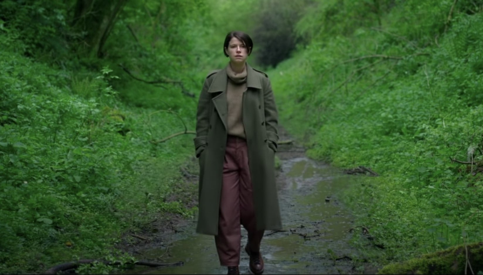 The film chronicles the retreat of Harper Marlowe (Jessie Buckley) to the countryside to recover from the trauma of an abusive husband falling past their apartment window in slow-mo before being artfully splayed out on the pavement below in a part of London with no other people or police or ambulances.