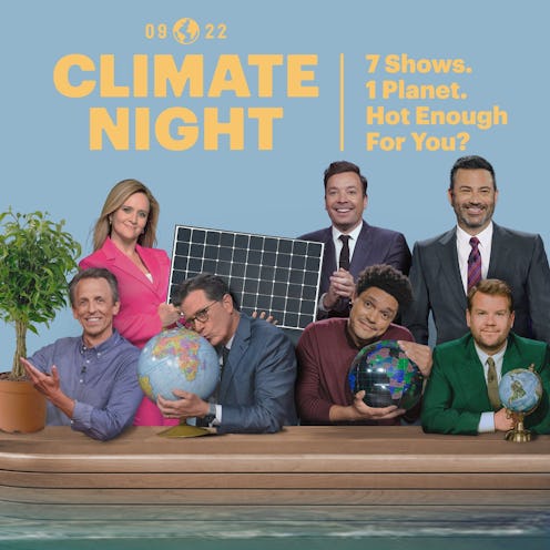Laughter is the best medicine, even for a giant rock floating around an even more giant star. That’s why all seven of the big name late night hosts — Stephen Colbert, Seth Meyers, Trevor Noah, Jimmy Fallon, James Corden, Jimmy Kimmel, and Samantha Bee — have teamed up to turn tonight into #ClimateNight.