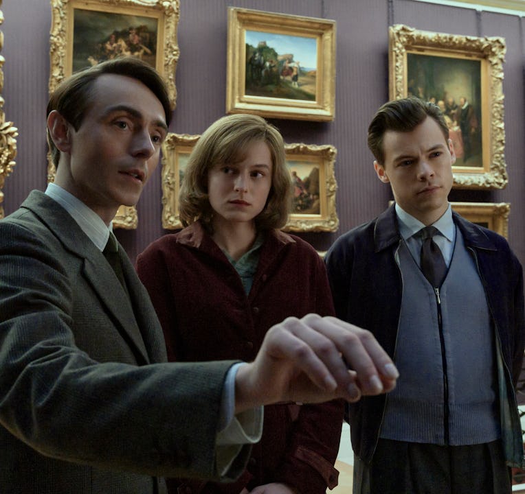 At this point, period pieces about tortured, secretive, and tragic gay relationships are their own prestige-picture subgenre, and My Policeman breaks no new ground in the field. If the sex scenes are explicit enough to potentially challenge the sort of aging theatrical audience that used to go see Merchant Ivory-style productions in the theater, they’re not quite enough to offset the overall drabness; whether or not Styles’s name on the poster will bring in kids is hard to say. But to give credit where it’s due, he does have the best moment in the movie. Asked by Patrick what he thinks of a J.M.W. Turner painting hanging in his art gallery, Tom, who refuses to put on airs (and wouldn’t know where to start if he did) gazes intently into the stormy canvas and seems embarrassed by his failure to perfectly articulate his feelings, even as he knows he has them. The sarcastic thing to say is that Styles is perfect for a character who doesn’t have control over his own intellectual instrument; the fairer observation may be that an actor who’s eager (recently to a fault) to express what he’s thinking has a found a way to empathetically imagine what it might to like to try to hold it all in.