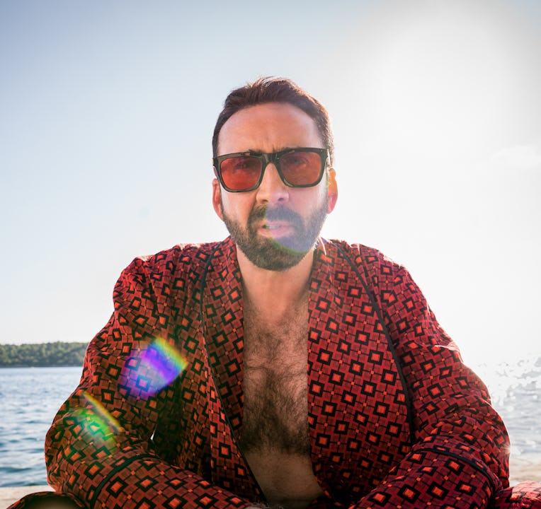 This is the plot of Cage’s new feature, The Unbearable Weight of Massive Talent, an endlessly mis-typable string of words. Cage plays himself, Nicolas Cage, or rather, Cage plays a version of himself, Nicolas Cage, a somewhat recently divorced actor with a teenage daughter who is past his prime and no longer booking roles. Cage also plays a version of himself, de-aged and smooth and alien, from around his Wild at Heart era known as “Nicky,” who is an ideation of pure ego. Cage and Nicky often converse when the former is alone, musing on the past and despairing over the future. Out of desperation for money and a lack of feasible options, Cage agrees to go to Mallorca and appear at the birthday party of a very wealthy man named Javi (Pedro Pascal). But Javi is connected to the cartels in Europe, and the CIA wants to get involved, and Cage, for the life of himself, just doesn’t know what to do next in his career. The film is a comedy and an action movie, as well as a metafictional commentary on comedies and action movies and “Nicolas Cage” as not just a man but an idea, a concept, a brand.