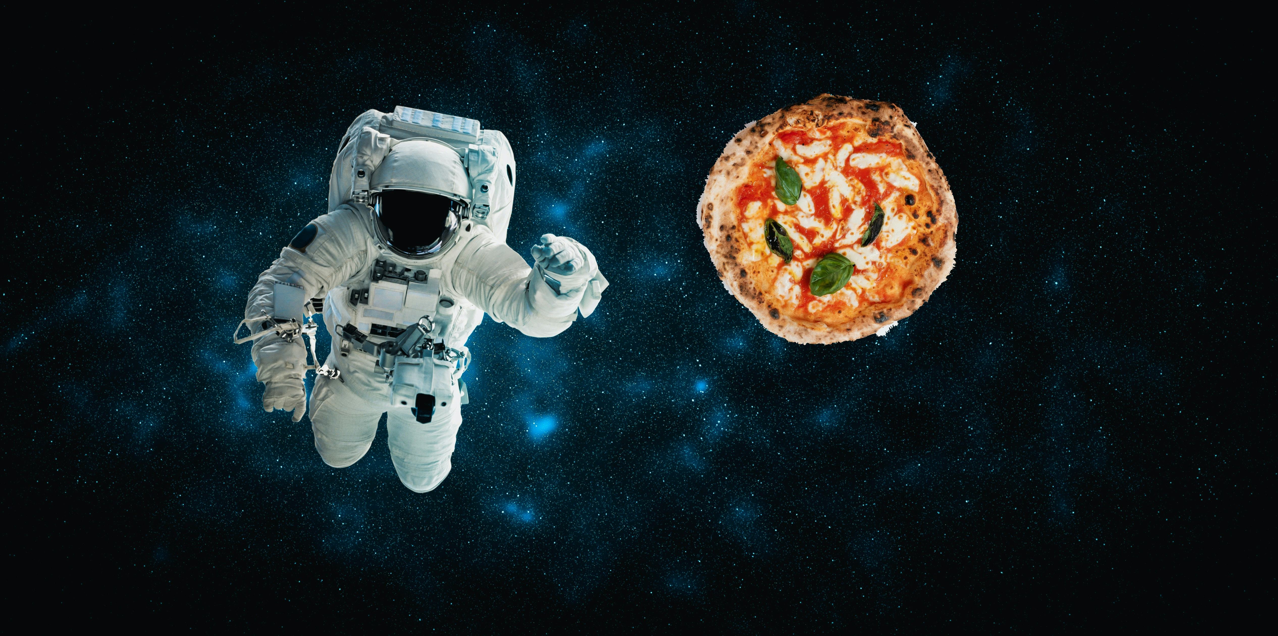 Space is so hot right now, but not in the way Earth is, oh and also not in the way these guys are. But, just — we’re talking about it, you’re talking about it, Jeff Bezos sort of went there, this kid went there with him (and jerked off?), a blob (la goutte) went there most recently. And now we can formally reveal — based on a story from the AP — that there’s pizza there, too, with the blob.