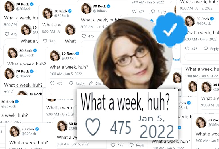 And then there is the account’s magnum opus. Every single Wednesday at 9 a.m. the poor soul behind this account tweets “What a week, huh,” and has been since August of 2019. It is a quote from the show spoken by its protagonist Liz Lemon (Tina Fey), to which her boss Jack Donaghy (Alec Baldwin), responds, “Lemon, it’s Wednesday.” Someone always quotes that part back in the replies.