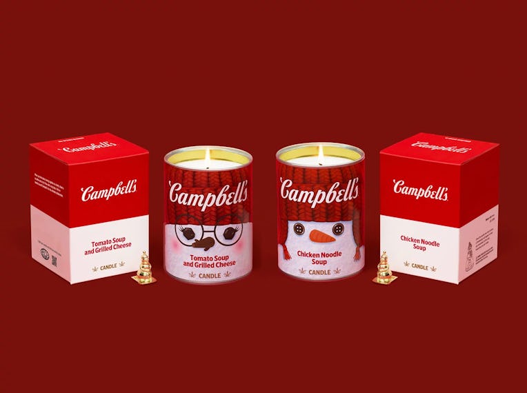 According to Food & Wine, Campbell’s has released limited amounts of two Campbell's Soup-inspired candles: “Chicken Noodle Soup” and “Tomato Soup and Grilled Cheese.” Okay. The chicken noodle one has “notes of savory chicken, cloves and buttery crackers,” and the other one smells like "roasted tomato, peppercorn, and gooey grilled cheese.” Fine.