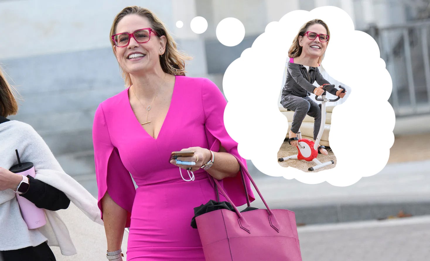 Perched on the spin bike, Sen. Kyrsten Sinema looked completely unrecognizable. Without her fashion glasses and various kitschy, faux-vintage accessories straight out of a Scooby Doo porn parody, she looked like any of the generically attractive 40-year-old women you see around Washington, D.C. Her pink-and-black workout gear was an acceptable uniform anywhere in the city; for once, she chose not to stand out in one of the most boring fashion cities in the world.